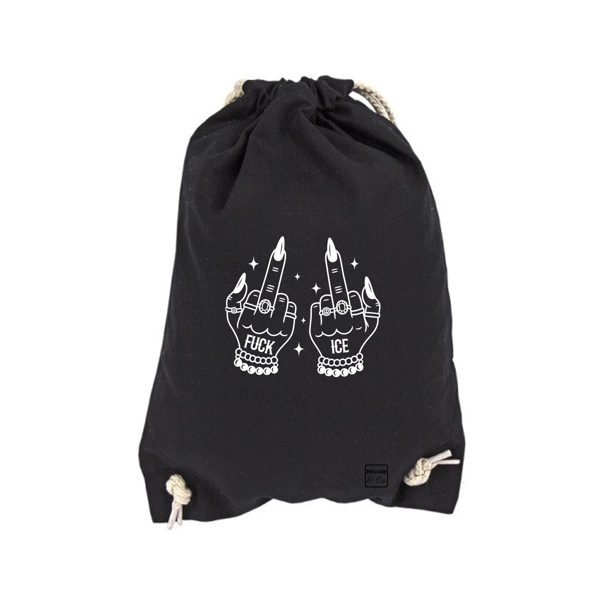 Der Turnbeutel „Fuck ICE“ ist ein klares Statement gegen Abschiebepolitik, Entmenschlichung und autoritäre Systeme – und für Solidarität, Menschenrechte und Widerstand.