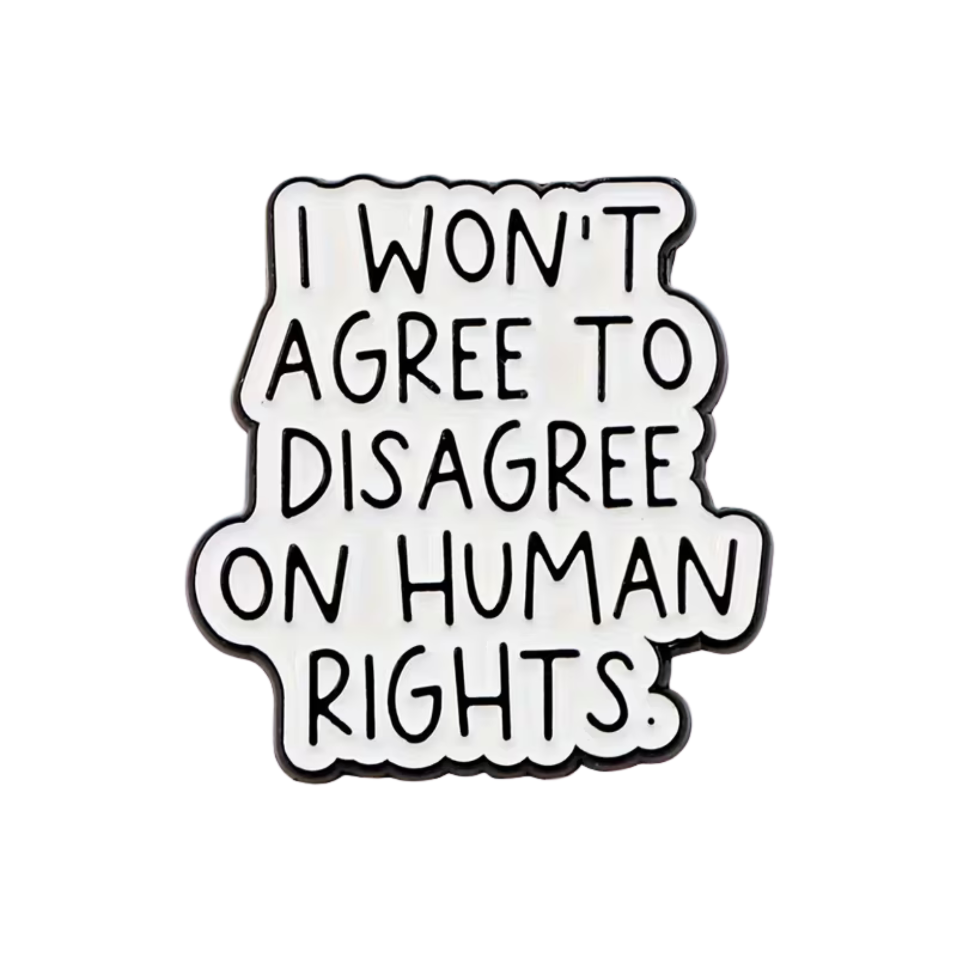Metallpin „I Won’t Agree to Disagree on Human Rights“ | Statement für Menschenrechte