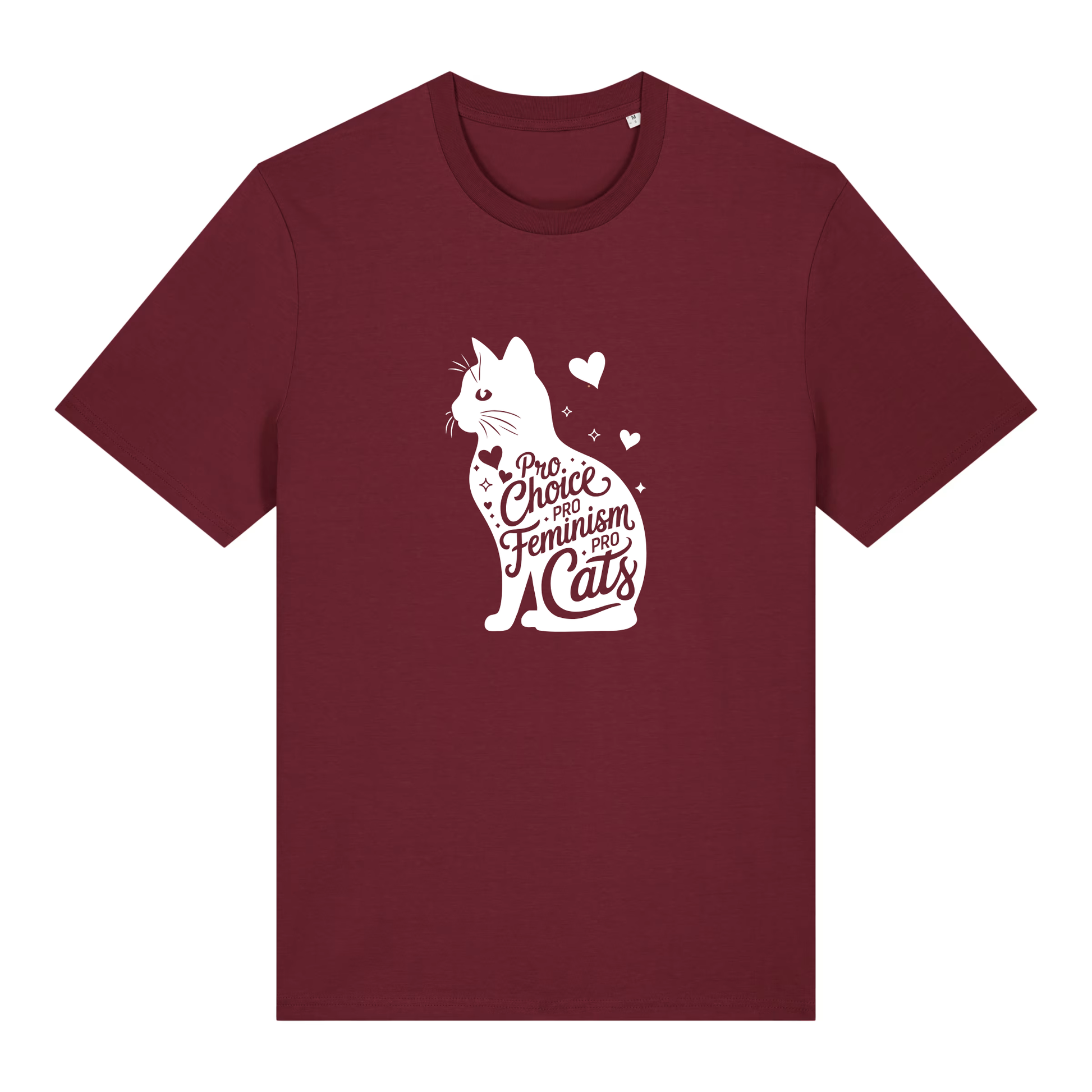 Unisex Bio-T-Shirt „Pro Choice – Pro Feminism – Pro Cats“ | Weißer Druck