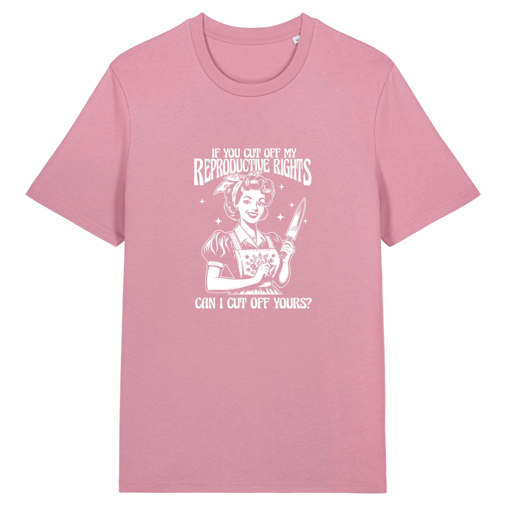 Motiv: „If you cut off my reproductive rights – can I cut off yours?“ im weißen Print